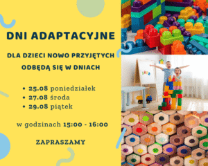Dni adaptacyjne 13 sierpnia, 2025 Category: Aktualności, przedszkolne Możliwość komentowania Dni adaptacyjne została wyłączona