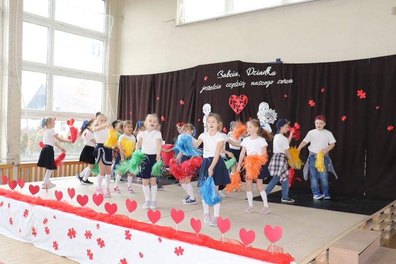 Dzieci wykazały się dużym zaangażowaniem, a całość była doskonale zorganizowana. Występy wzruszały, bawiły i wywoływały wiele uśmiechów oraz gromkie brawa. Dziadkowie otrzymali przepiękne prezenty własnoręcznie wykonane przez ich wnuków. Na koniec dzieci wspólnie odśpiewały głośne STO LAT.
