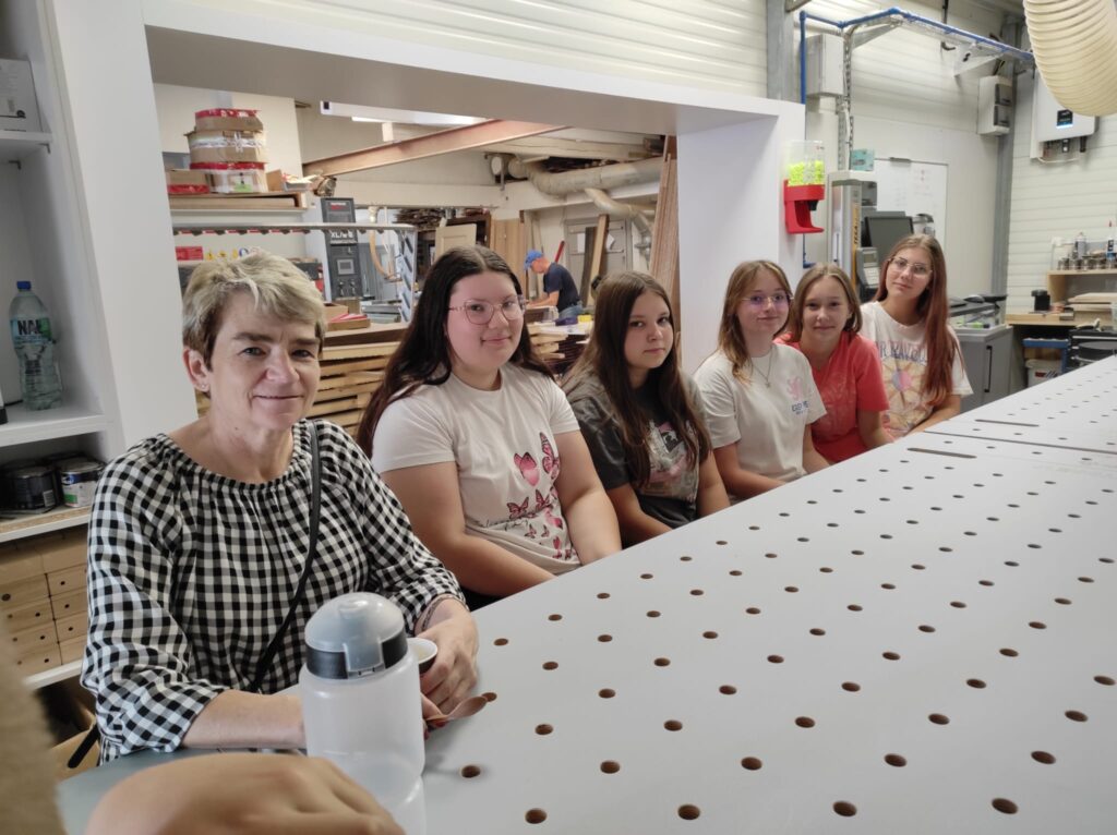 We wrześniu uczniowie klasy 8 i 7 wzięli udział w wyjątkowych lekcjach rzemiosła: „Od pomysłu do projektu – cyfrowa rewolucja w warsztacie stolarskim”. Warsztaty zostały zorganizowane przez firmę Stolarstwo Sadło z Chrząszczyc.