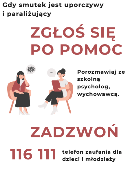 W naszej szkole chcemy podkreślić, że proszenie o pomoc jest oznaką siły, a nie słabości. Zachęcamy do rozmowy ze szkolną psycholog i wychowawcami. Można zostawić wiadomość w skrzynce zaufania.