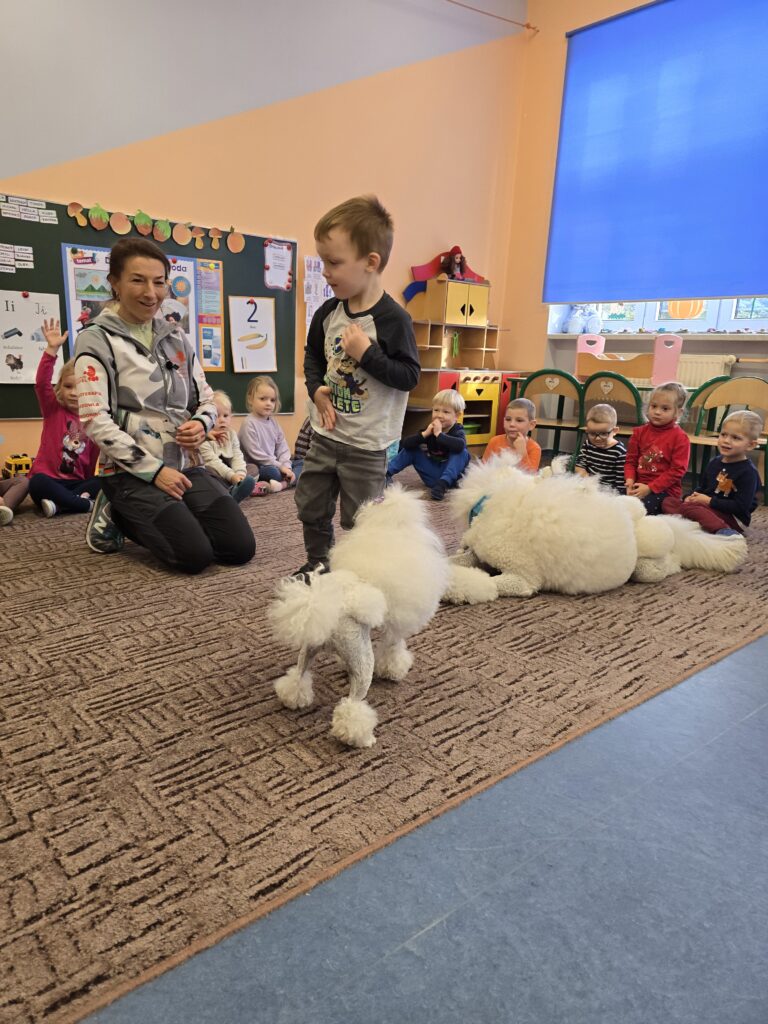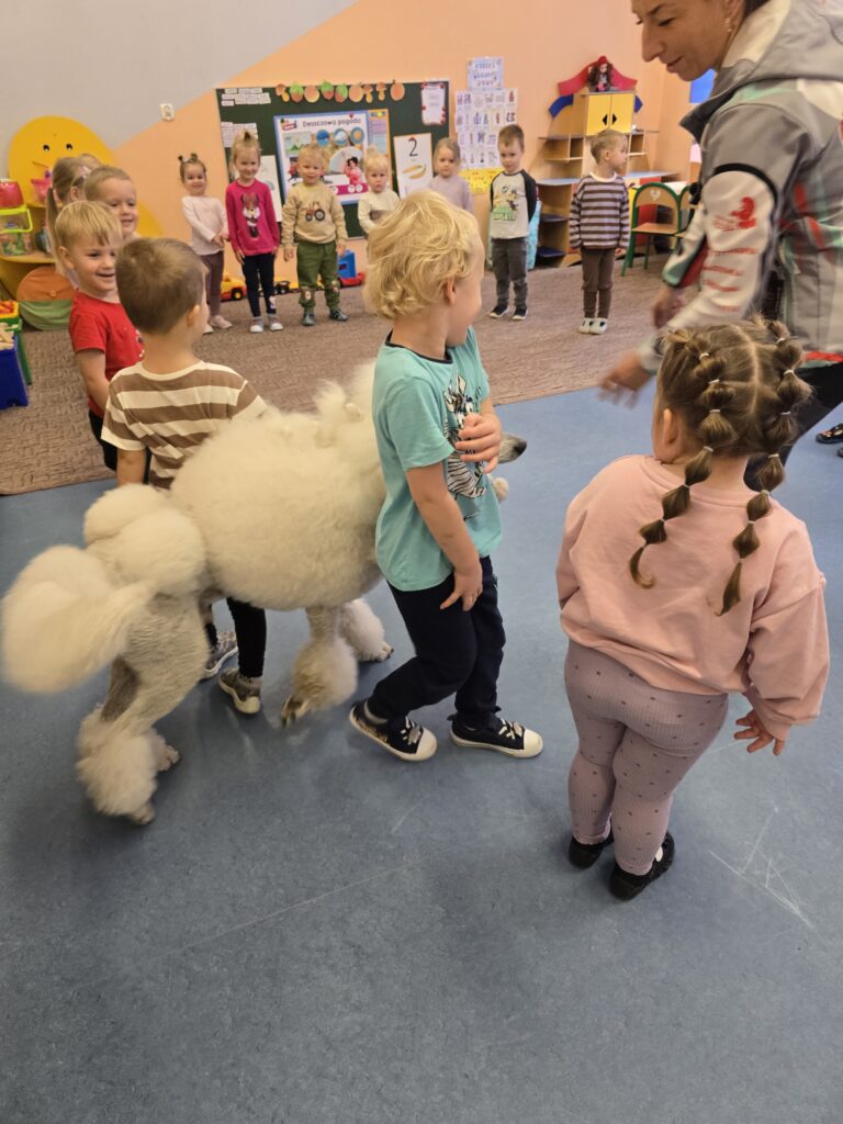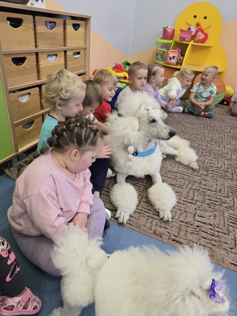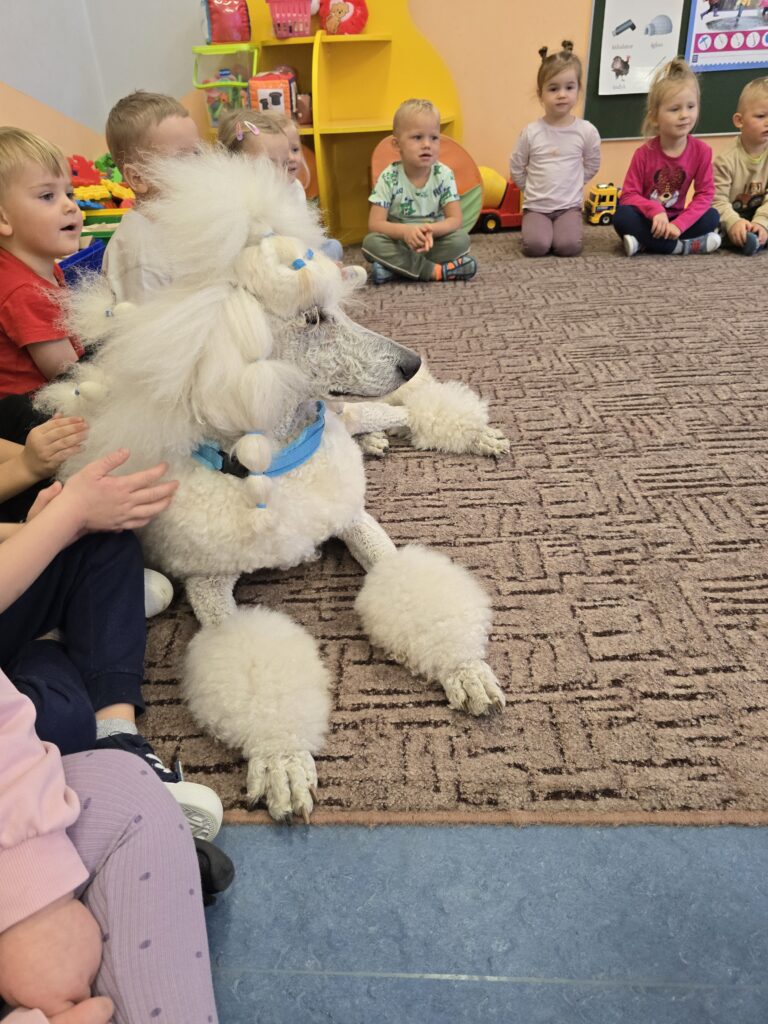 Nasze przedszkole odwiedziły dwa urocze pudle. Dzieci na długo zapamiętają to spotkanie.