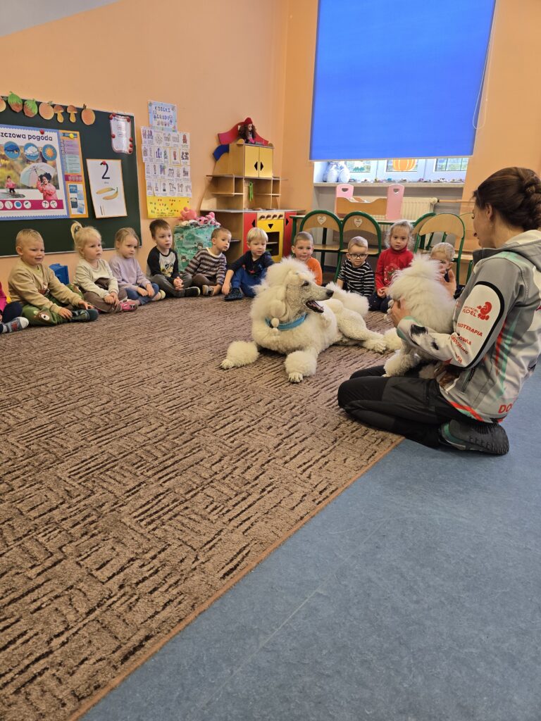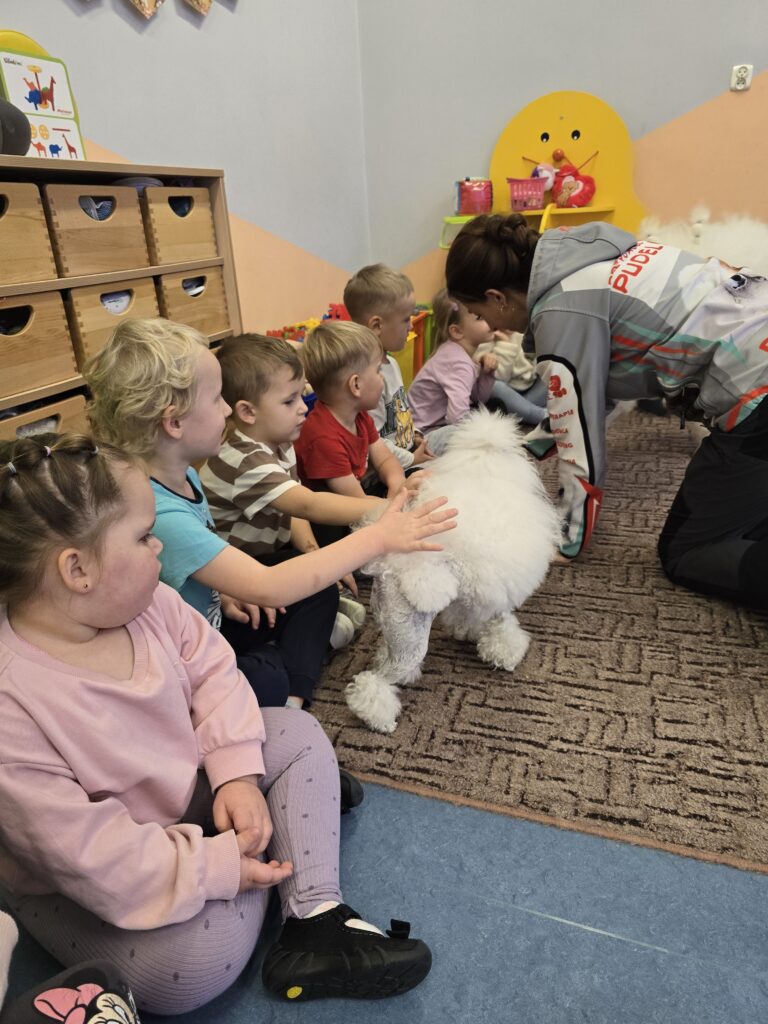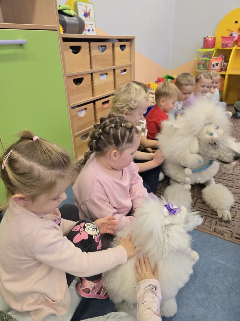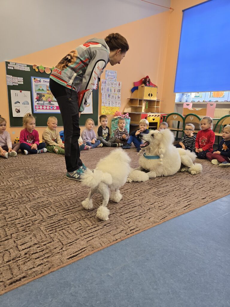 Nasze przedszkole odwiedziły dwa urocze pudle. Dzieci na długo zapamiętają to spotkanie.