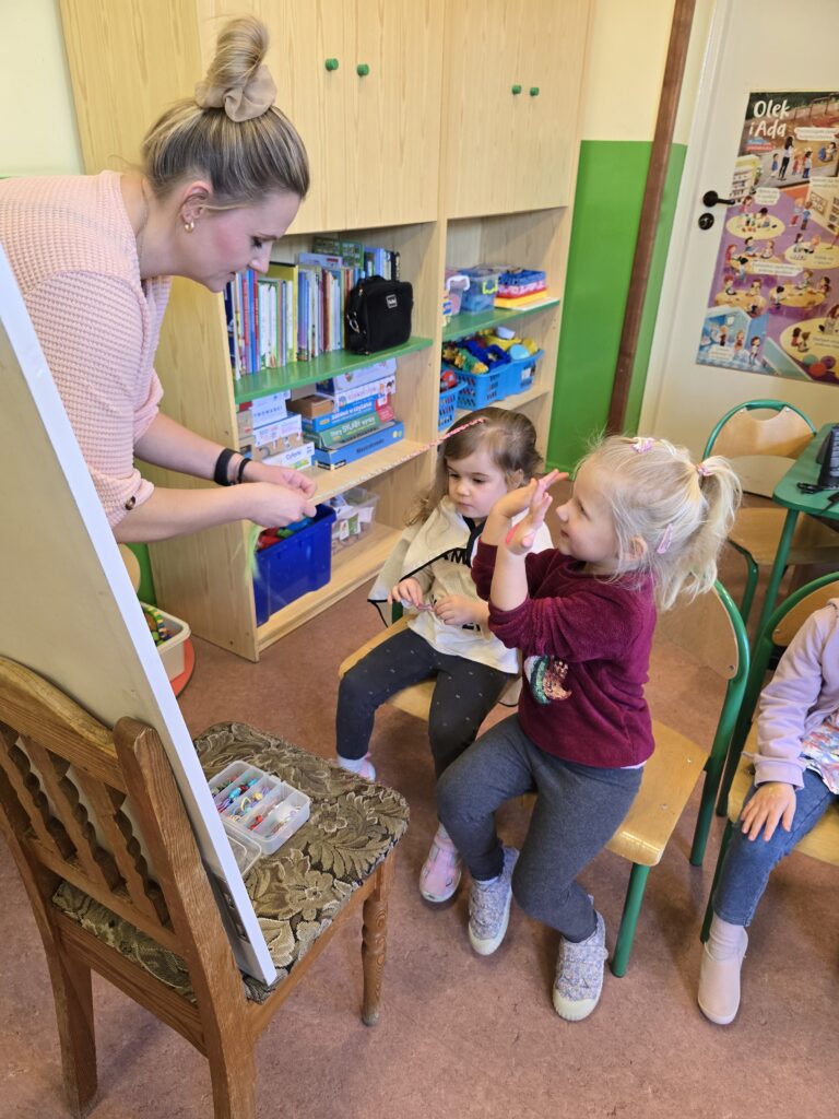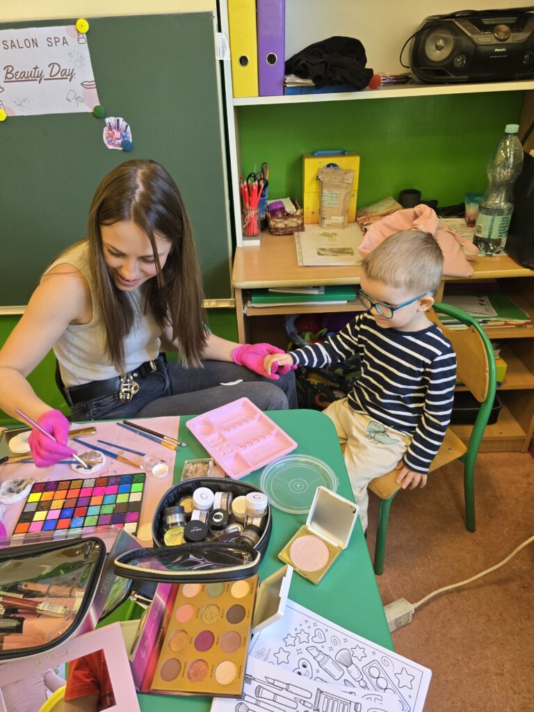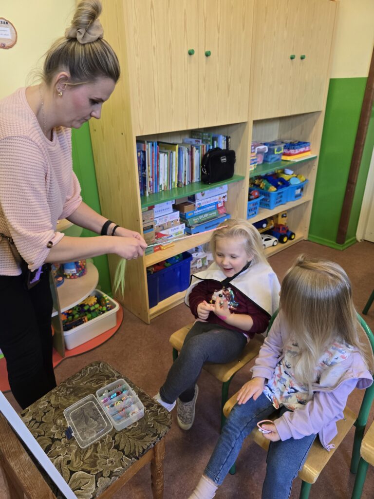 W ramach preorientacji zawodowej nasze przedszkolaki miały możliwość poznać zawód fryzjerki, makijażystki oraz stylistki paznokci.