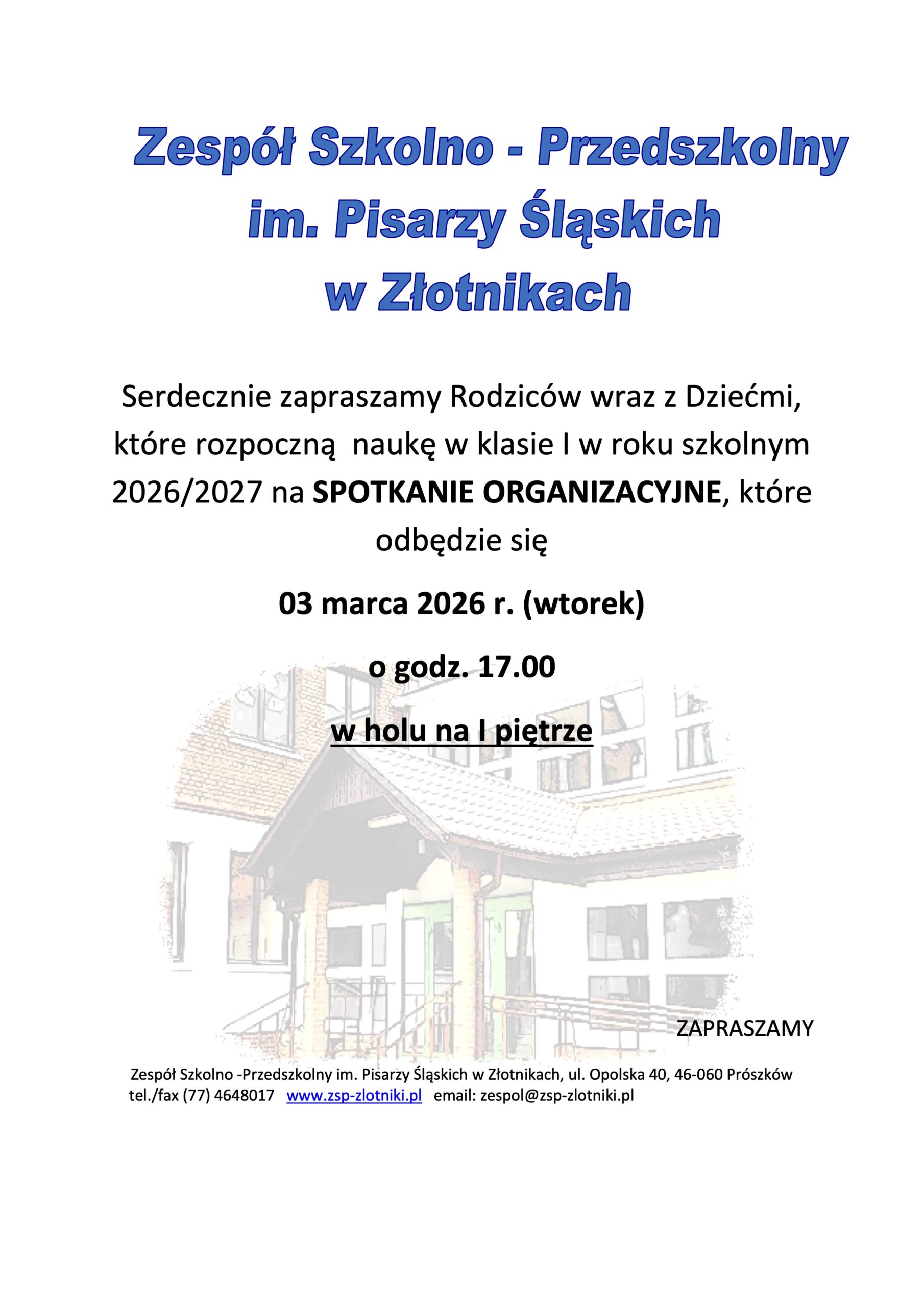 Spotkanie organizacyjne 4 lutego, 2026 Category: szkolne, Aktualności Możliwość komentowania Spotkanie organizacyjne została wyłączona