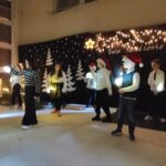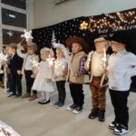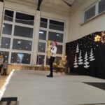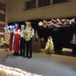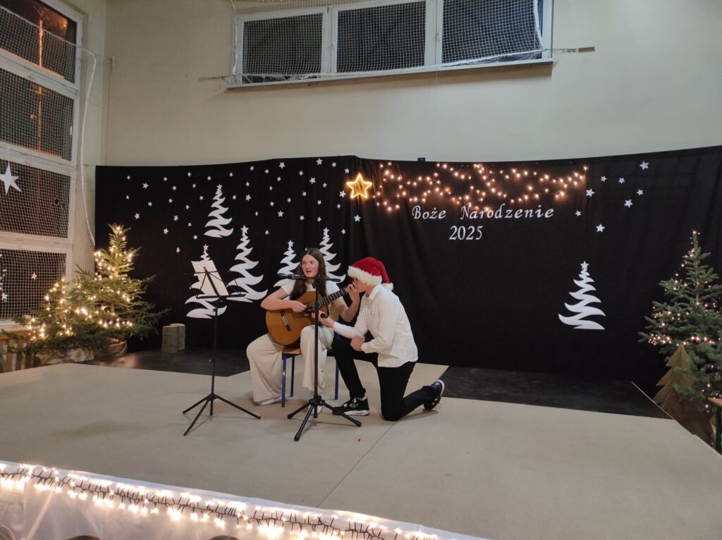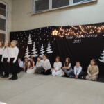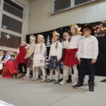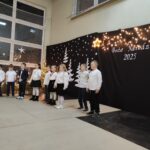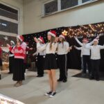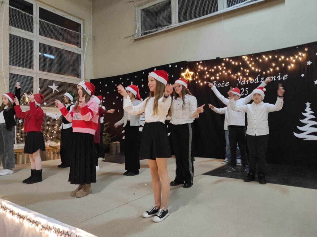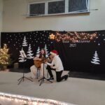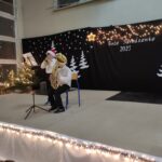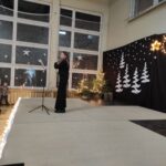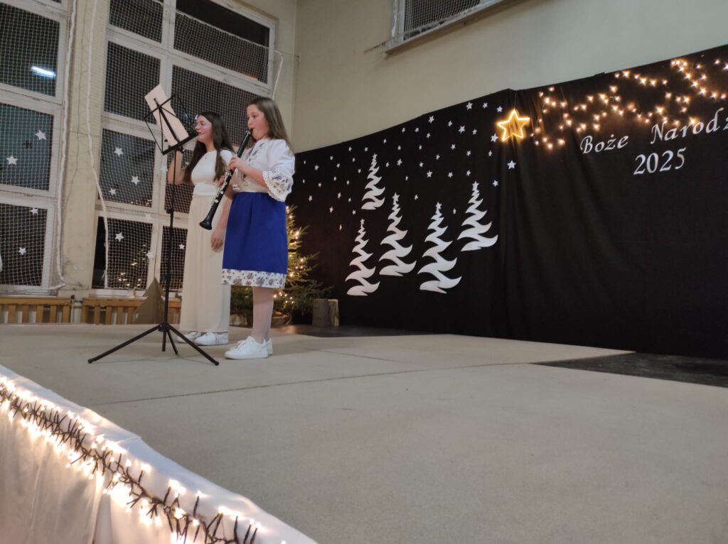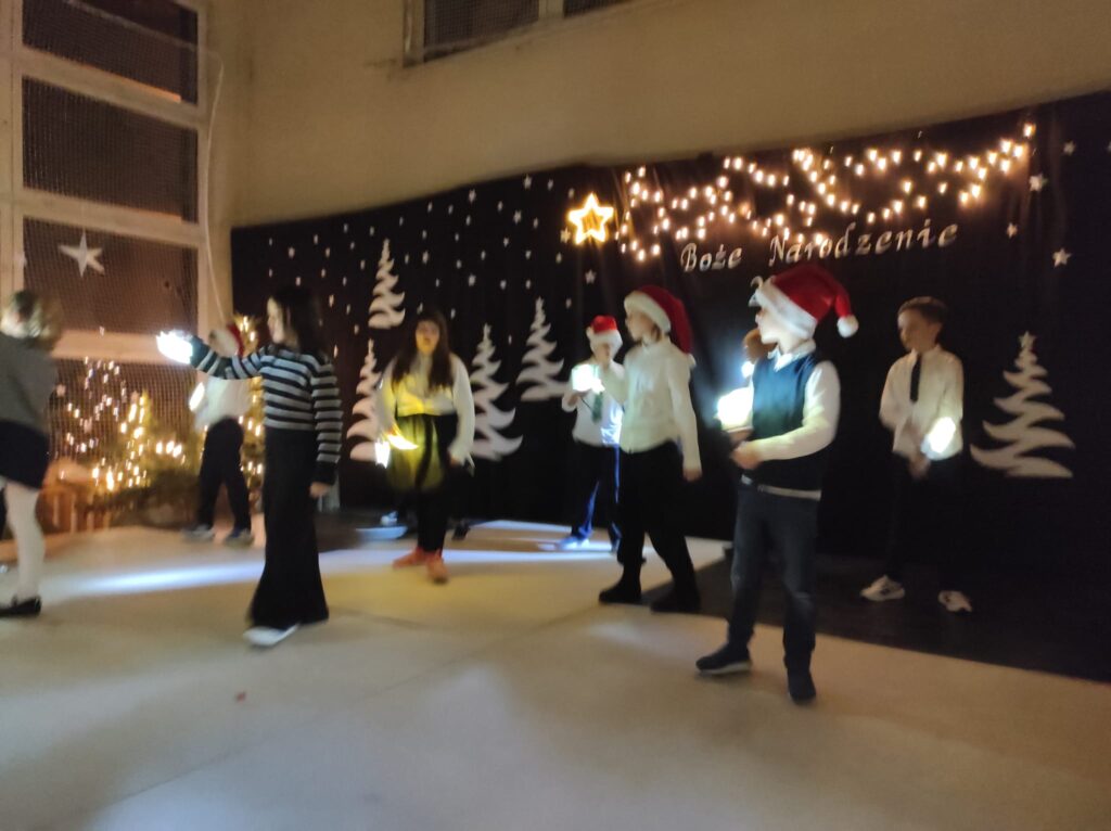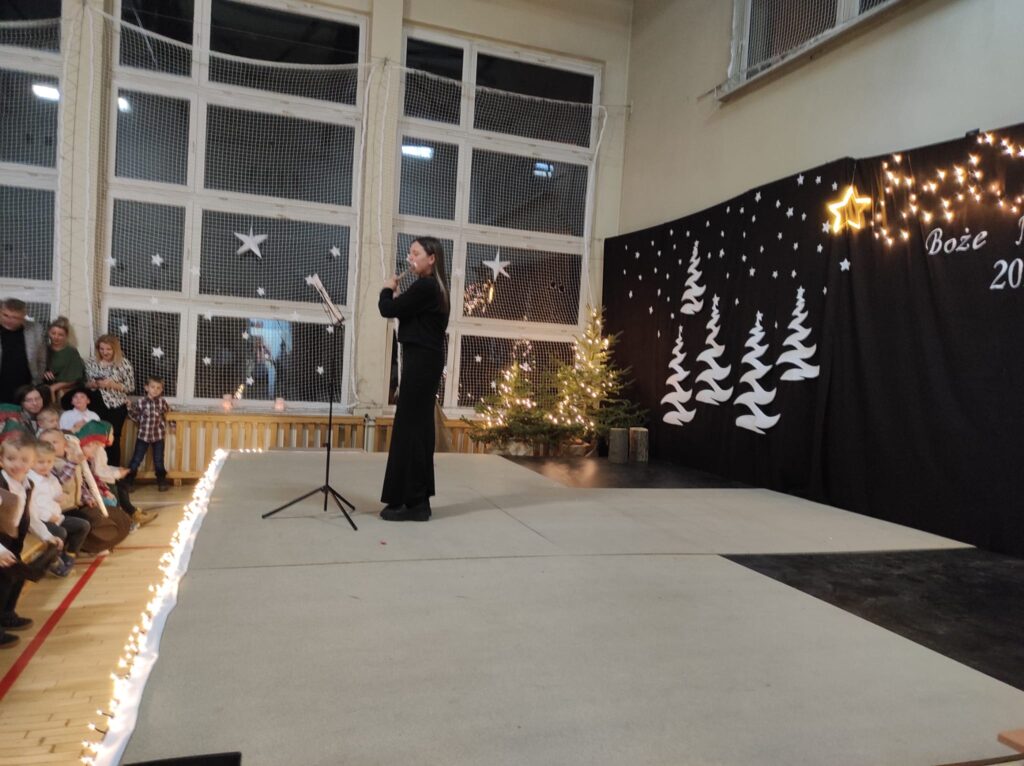 Wyjątkowy, świąteczny koncert rozpoczęły tradycyjnie występy grup przedszkolnych. Małe i większe elfy i aniołki zaśpiewały dla nas o Bożym Narodzeniu, życząc równocześnie Wesołych Świąt! Dalej, szanowni goście, nauczyciele i rodzice wsłuchiwali się w kolejne utwory, które prezentowały poszczególne klasy. Wielu z nas zachwycił taniec „Przyjdź mój Panie, malutki Panie” w wykonaniu uczniów klasy IIIA oraz duet: Szymon z klasy VIII i Dominik z klasy VI, którzy zagrali nam na trąbkach kolędę „Dzisiaj w Betlejem”. Mogliśmy też podziwiać tańce do świątecznych melodii, usłyszeć Bożonarodzeniowe wiersze i obejrzeć przedstawienie „Świąteczny Targ Cudów”, które przygotowało Szkolne Kółko Teatralne. W ostatnim występie wieczoru zaprezentowało się instrumentalne trio: dwie trąbi (Szymon i Dominik) i tuba – Eryk z klasy VII. Zagrali dla nas „Cichą noc”.