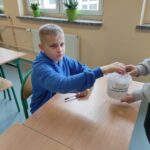 w klasach podczas lekcji matematyki. Chętni uczniowie losowali zestaw pięciu przykładów