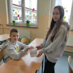 z mnożenia lub dzielenia. Osoby, które poprawnie rozwiązały wszystkie przykłady, otrzymały legitymację Eksperta Tabliczki Mnożenia oraz naklejkę.
