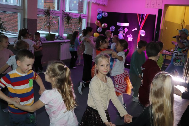 Zgodnie z coroczną tradycją uczniowie klas I-III wzięli udział w zabawie Andrzejkowej. Było to wyjątkowe popołudnie pełne tańców i wspólnej zabawy. Już od pierwszych chwil wszyscy świetnie się bawili. Pan prowadzący zabawiał uczniów różnymi układami tanecznymi i wężykami, dzięki czemu każdy z zaangażowaniem brał udział we wspólnej zabawie. Wszystkim dopisywały humory, a pełna energii atmosfera sprawiła, że trudno było zakończyć wspólne tańce.