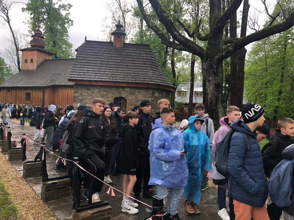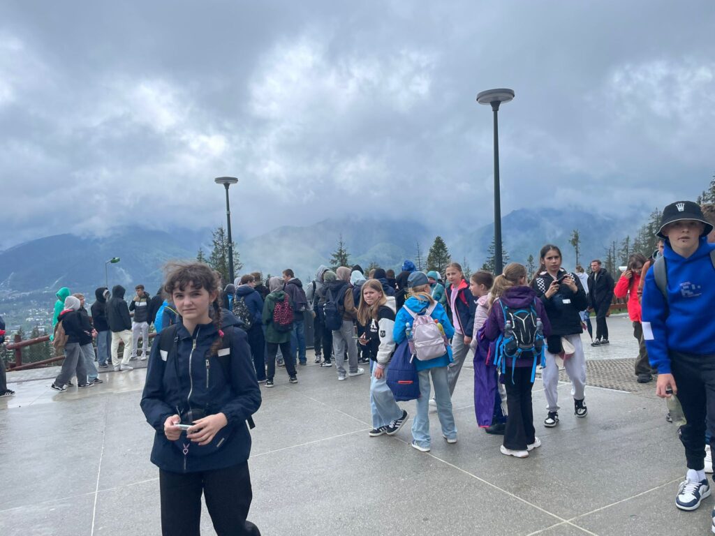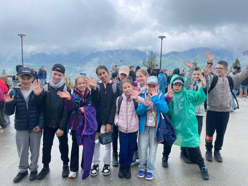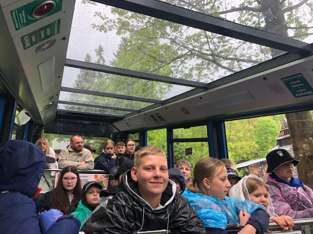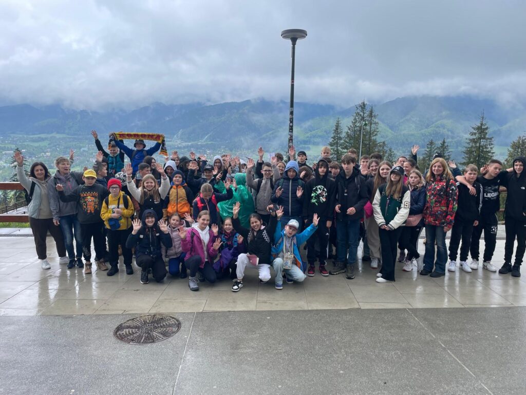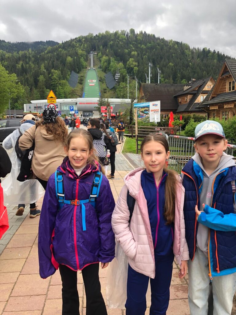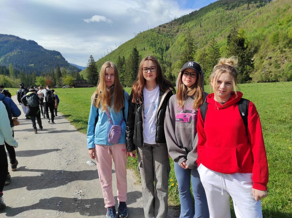 29 i 30 maja klasy IV -VIII były na wycieczce w Zakopanem, gdzie poznawały krajobrazy i kulturę tatrzańską. Pogoda w pierwszym dniu nie zachęcała do pieszych wędrówek, ale i tak cały plan został zrealizowany: najpierw wjechaliśmy kolejką na Gubałówkę, skąd rozciąga się piękna panorama Tatr, potem przeszliśmy spacerkiem na cmentarz na Pęksowym Brzyzku i na Krupówki, a następnie pod Wielką Krokiew, by wdrapać się na jej szczyt (niektórym zajęło to zaledwie 10 minut🙃). W ośrodku zjedliśmy obiadokolację, zaśpiewaliśmy ” Sto lat” Marcelinie, która miała urodziny i przeszliśmy do izby regionalnej, aby posłuchać jak pan Gąsienica opowiada o kulturze tatrzańskiej. Dzień zakończyliśmy ogniskiem i kiełbaskami, które dzielnie piekły panie: Klaudia i Monika. Następny dzień przywitał nas słoneczkiem. Po śniadaniu spotkaliśmy się z panem przewodnikiem, który przeprowadził nas przez Dolinę Kościeliską, pokazywał szczyty, które mijaliśmy i ciekawie o nich opowiadał. W schronisku można było posilić się tradycyjną szarlotką, a na koniec zatrzymaliśmy się przy bacówce i próbowaliśmy pysznych oscypków. Po rozstaniu z przewodnikiem udaliśmy się w drogę powrotną do Złotnik, skąd odebrali nas stęsknieni rodzice. To było jedno z tych wydarzeń szkolnych, które pozostają w pamięci na zawsze. Zachęcamy do obejrzenia fotorelacji.