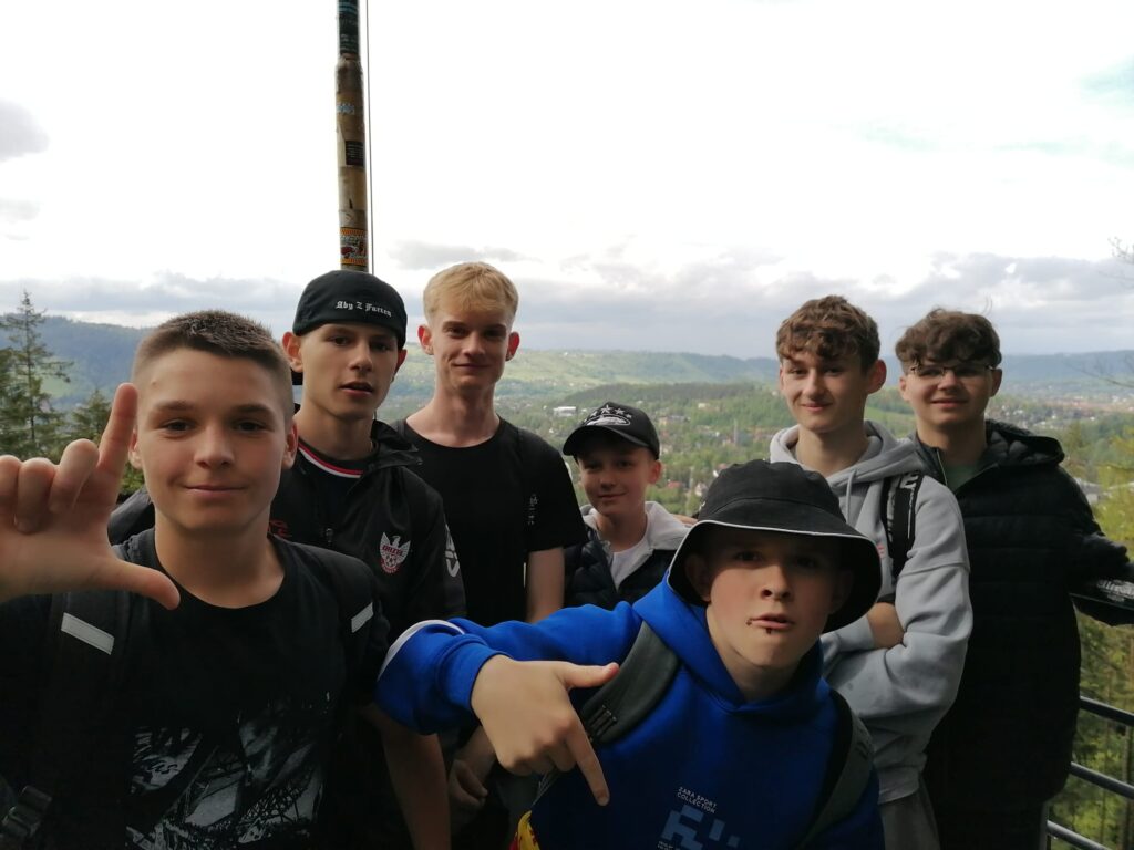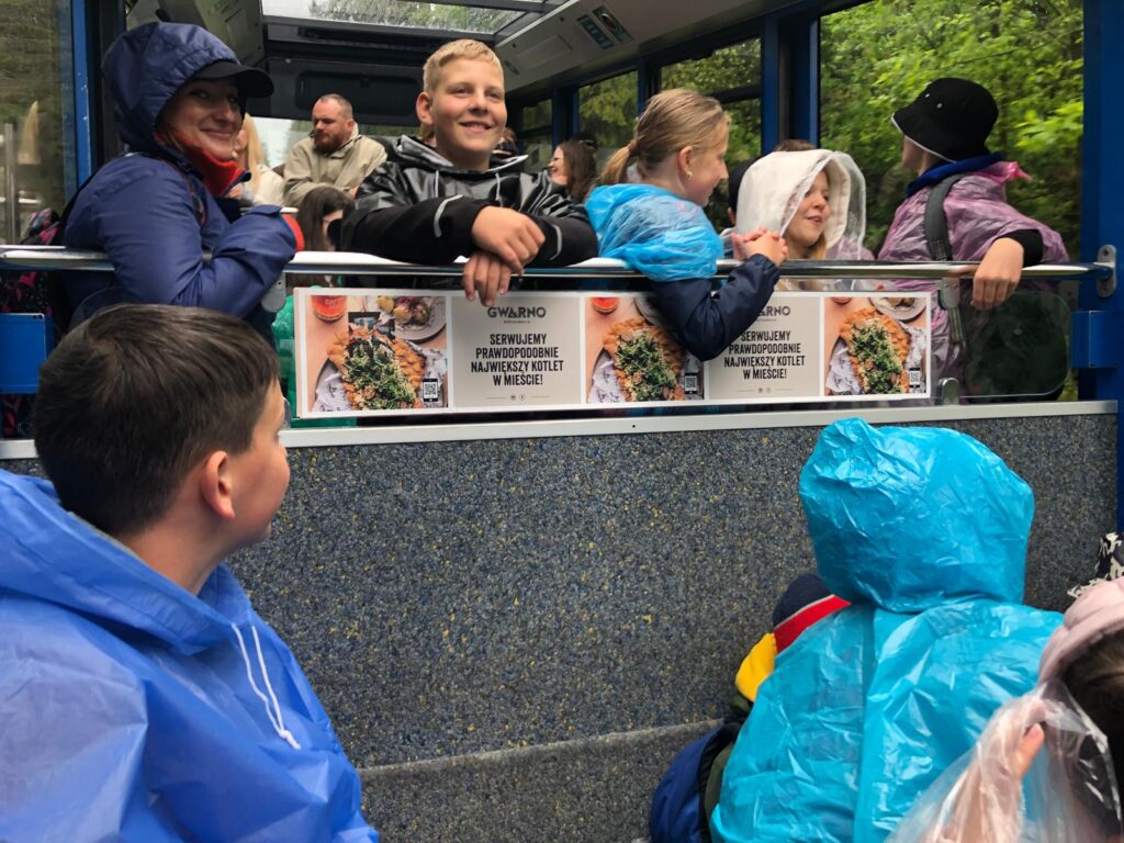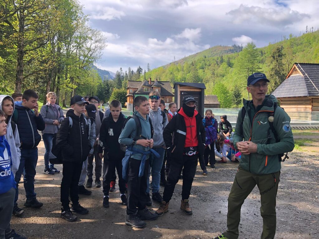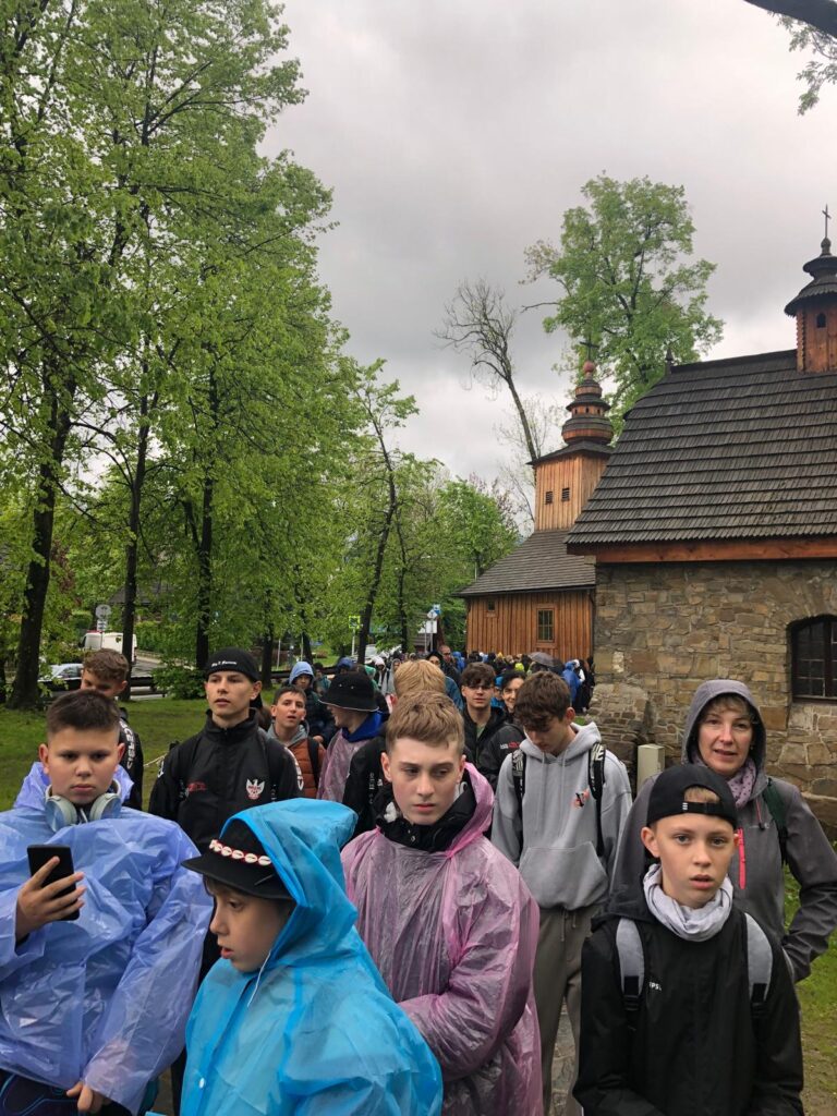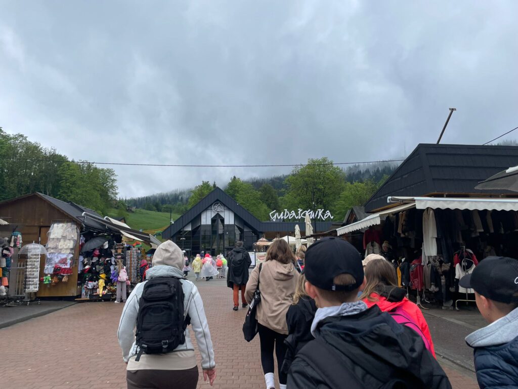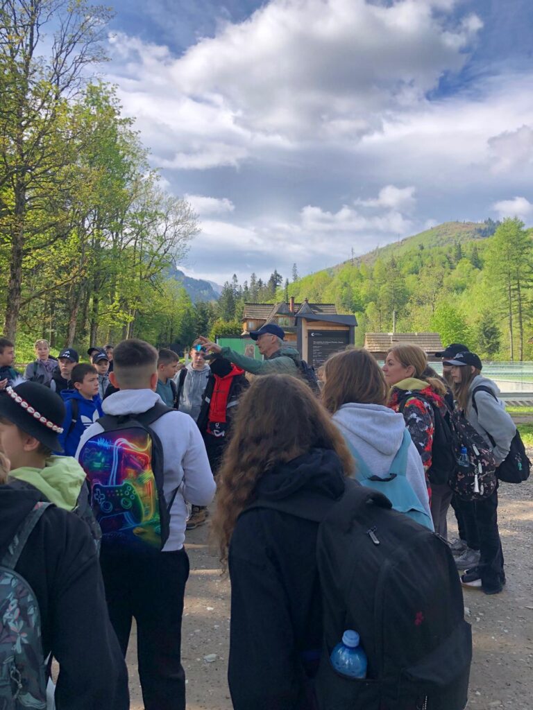 29 i 30 maja klasy IV -VIII były na wycieczce w Zakopanem, gdzie poznawały krajobrazy i kulturę tatrzańską. Pogoda w pierwszym dniu nie zachęcała do pieszych wędrówek, ale i tak cały plan został zrealizowany: najpierw wjechaliśmy kolejką na Gubałówkę, skąd rozciąga się piękna panorama Tatr, potem przeszliśmy spacerkiem na cmentarz na Pęksowym Brzyzku i na Krupówki, a następnie pod Wielką Krokiew, by wdrapać się na jej szczyt (niektórym zajęło to zaledwie 10 minut🙃). W ośrodku zjedliśmy obiadokolację, zaśpiewaliśmy ” Sto lat” Marcelinie, która miała urodziny i przeszliśmy do izby regionalnej, aby posłuchać jak pan Gąsienica opowiada o kulturze tatrzańskiej. Dzień zakończyliśmy ogniskiem i kiełbaskami, które dzielnie piekły panie: Klaudia i Monika. Następny dzień przywitał nas słoneczkiem. Po śniadaniu spotkaliśmy się z panem przewodnikiem, który przeprowadził nas przez Dolinę Kościeliską, pokazywał szczyty, które mijaliśmy i ciekawie o nich opowiadał. W schronisku można było posilić się tradycyjną szarlotką, a na koniec zatrzymaliśmy się przy bacówce i próbowaliśmy pysznych oscypków. Po rozstaniu z przewodnikiem udaliśmy się w drogę powrotną do Złotnik, skąd odebrali nas stęsknieni rodzice. To było jedno z tych wydarzeń szkolnych, które pozostają w pamięci na zawsze. Zachęcamy do obejrzenia fotorelacji.