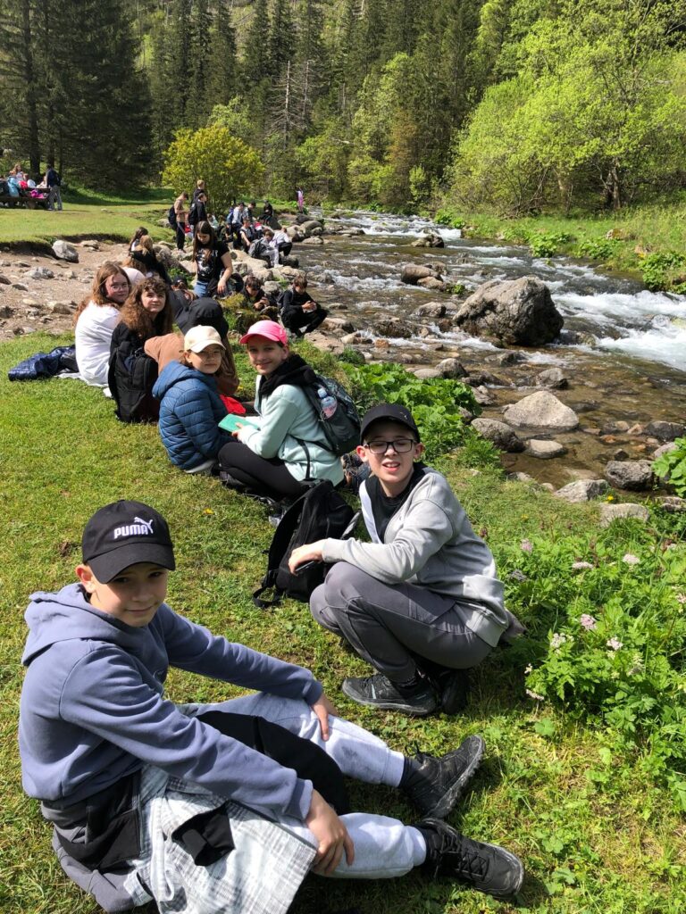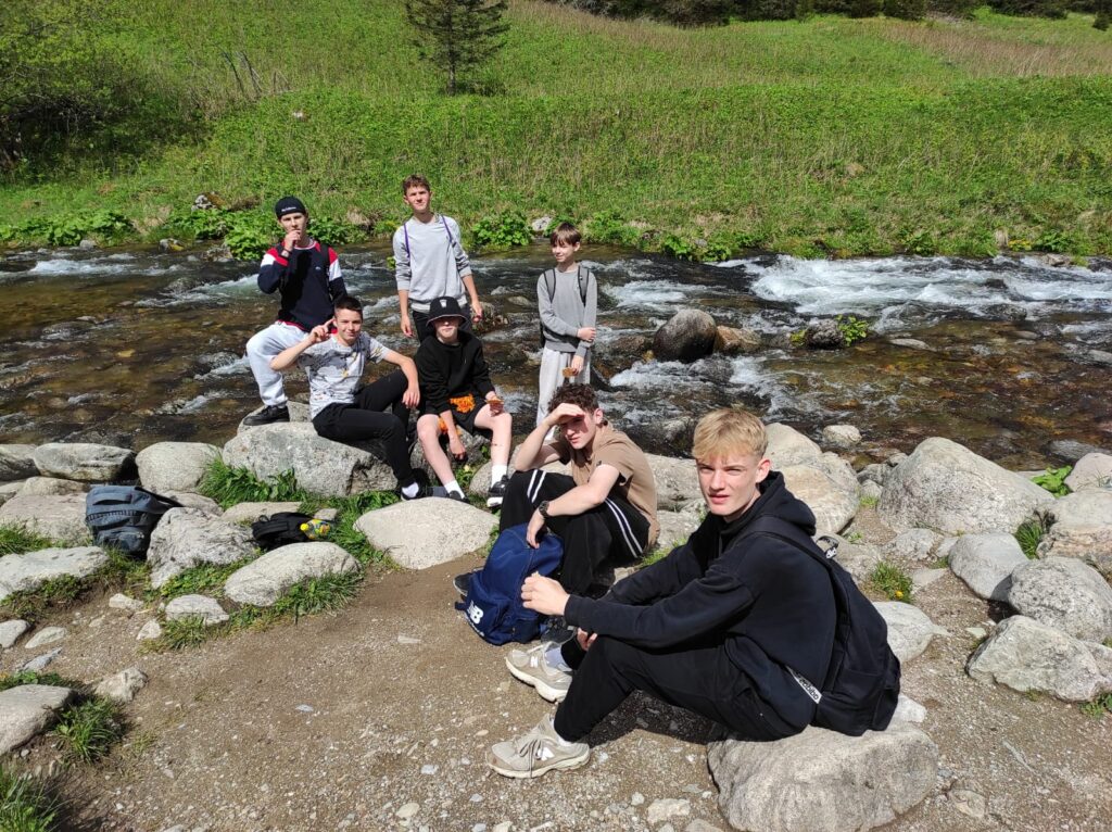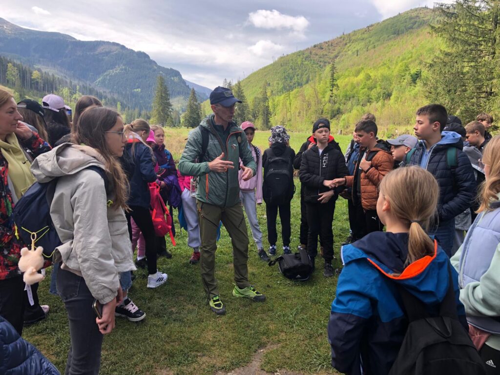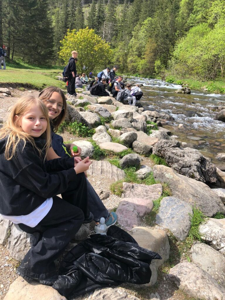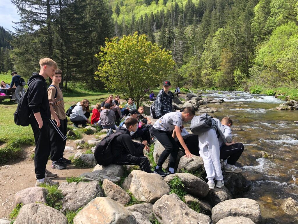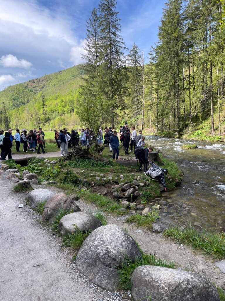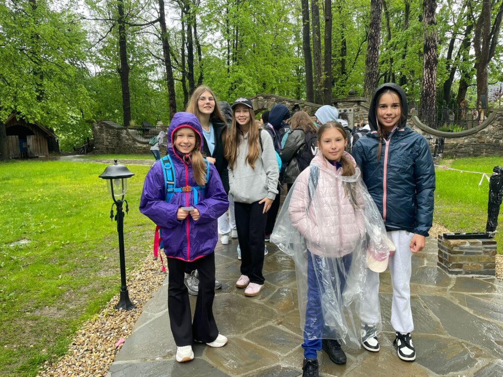 29 i 30 maja klasy IV -VIII były na wycieczce w Zakopanem, gdzie poznawały krajobrazy i kulturę tatrzańską. Pogoda w pierwszym dniu nie zachęcała do pieszych wędrówek, ale i tak cały plan został zrealizowany: najpierw wjechaliśmy kolejką na Gubałówkę, skąd rozciąga się piękna panorama Tatr, potem przeszliśmy spacerkiem na cmentarz na Pęksowym Brzyzku i na Krupówki, a następnie pod Wielką Krokiew, by wdrapać się na jej szczyt (niektórym zajęło to zaledwie 10 minut🙃). W ośrodku zjedliśmy obiadokolację, zaśpiewaliśmy ” Sto lat” Marcelinie, która miała urodziny i przeszliśmy do izby regionalnej, aby posłuchać jak pan Gąsienica opowiada o kulturze tatrzańskiej. Dzień zakończyliśmy ogniskiem i kiełbaskami, które dzielnie piekły panie: Klaudia i Monika. Następny dzień przywitał nas słoneczkiem. Po śniadaniu spotkaliśmy się z panem przewodnikiem, który przeprowadził nas przez Dolinę Kościeliską, pokazywał szczyty, które mijaliśmy i ciekawie o nich opowiadał. W schronisku można było posilić się tradycyjną szarlotką, a na koniec zatrzymaliśmy się przy bacówce i próbowaliśmy pysznych oscypków. Po rozstaniu z przewodnikiem udaliśmy się w drogę powrotną do Złotnik, skąd odebrali nas stęsknieni rodzice. To było jedno z tych wydarzeń szkolnych, które pozostają w pamięci na zawsze. Zachęcamy do obejrzenia fotorelacji.
