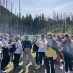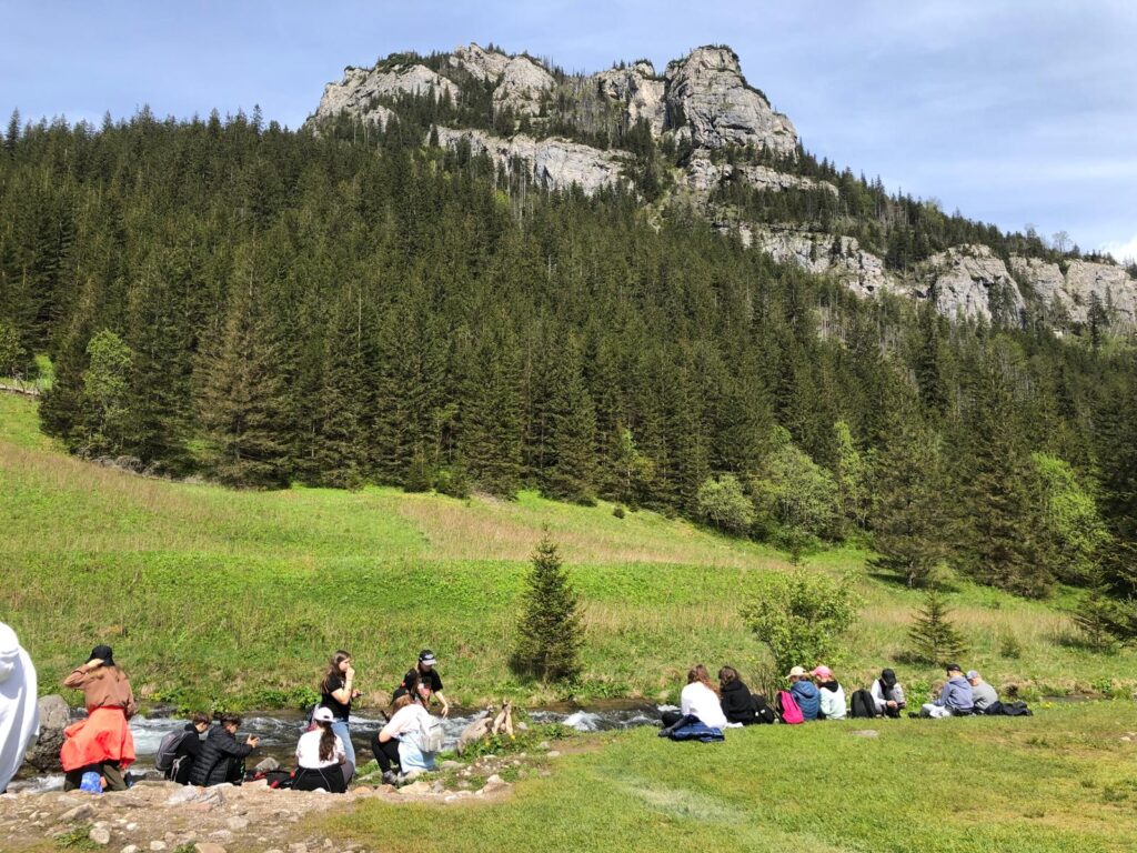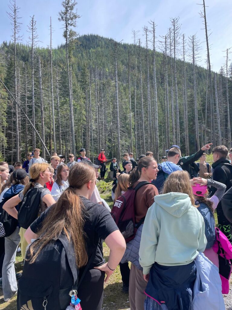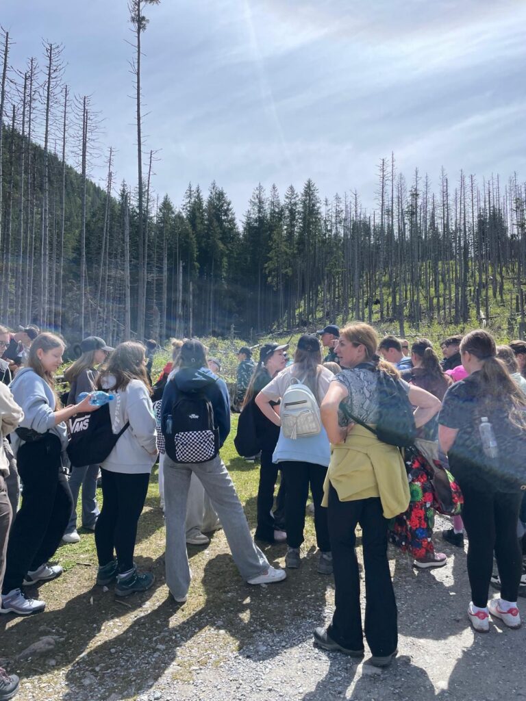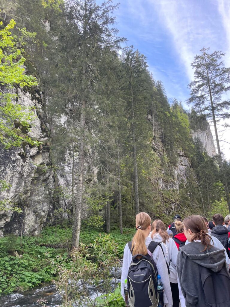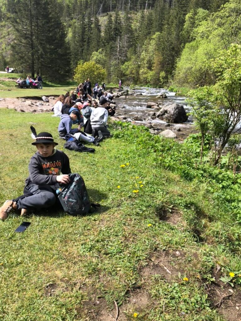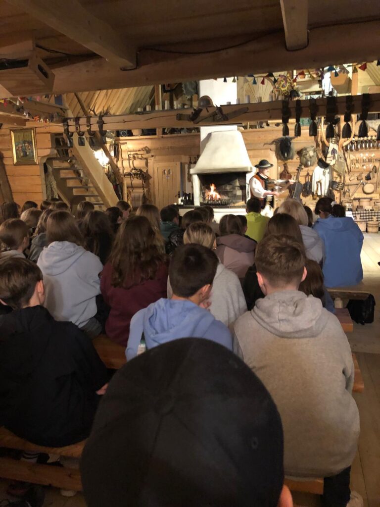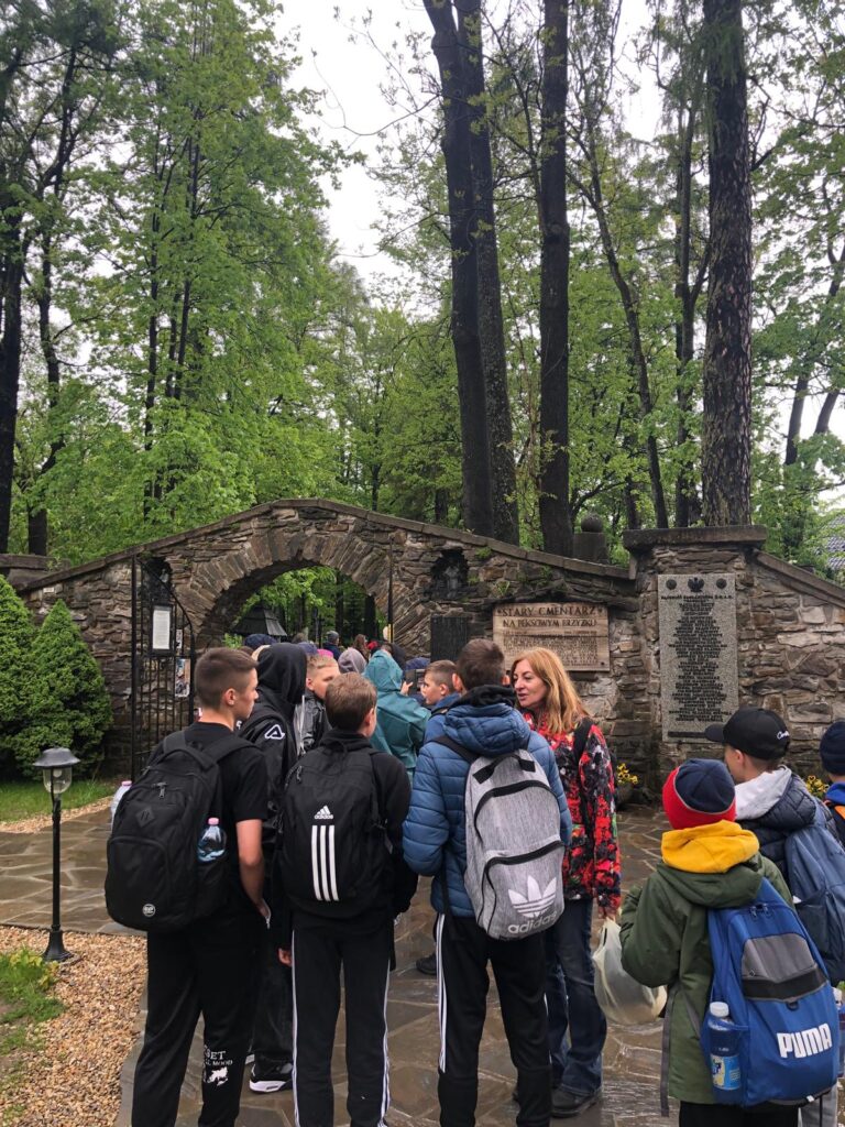 29 i 30 maja klasy IV -VIII były na wycieczce w Zakopanem, gdzie poznawały krajobrazy i kulturę tatrzańską. Pogoda w pierwszym dniu nie zachęcała do pieszych wędrówek, ale i tak cały plan został zrealizowany: najpierw wjechaliśmy kolejką na Gubałówkę, skąd rozciąga się piękna panorama Tatr, potem przeszliśmy spacerkiem na cmentarz na Pęksowym Brzyzku i na Krupówki, a następnie pod Wielką Krokiew, by wdrapać się na jej szczyt (niektórym zajęło to zaledwie 10 minut🙃). W ośrodku zjedliśmy obiadokolację, zaśpiewaliśmy ” Sto lat” Marcelinie, która miała urodziny i przeszliśmy do izby regionalnej, aby posłuchać jak pan Gąsienica opowiada o kulturze tatrzańskiej. Dzień zakończyliśmy ogniskiem i kiełbaskami, które dzielnie piekły panie: Klaudia i Monika. Następny dzień przywitał nas słoneczkiem. Po śniadaniu spotkaliśmy się z panem przewodnikiem, który przeprowadził nas przez Dolinę Kościeliską, pokazywał szczyty, które mijaliśmy i ciekawie o nich opowiadał. W schronisku można było posilić się tradycyjną szarlotką, a na koniec zatrzymaliśmy się przy bacówce i próbowaliśmy pysznych oscypków. Po rozstaniu z przewodnikiem udaliśmy się w drogę powrotną do Złotnik, skąd odebrali nas stęsknieni rodzice. To było jedno z tych wydarzeń szkolnych, które pozostają w pamięci na zawsze. Zachęcamy do obejrzenia fotorelacji.